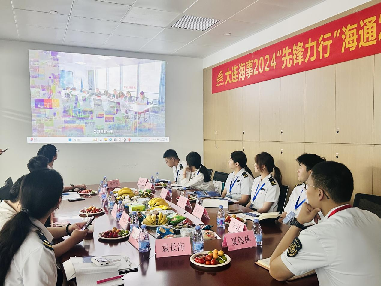 2024年8月1日大連海事大學外語學院指導員夏翰林老師帶領暑期社會實踐團隊8名學生來到海通發(fā)展參與交流調(diào)研。外貿(mào)航運中心總經(jīng)理袁長海、人資行政中心副總經(jīng)理李磊代表公司出席。